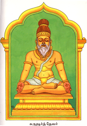 தஞ்சையில் முதலாம் இராஜராஜசோழன் (கி.பி. 985-1014) தனது இருபதாம் ஆண்டு ஆட்சிக்காலத்தில் கட்டத் தொடங்கிய இராசராசேச்சுரத்துப் பெருவுடையார்க்கு அஷ்டபந்தன மருந்து சார்த்தினன். அம்மருந்து பலமுறை சார்த்தியும் இறுகாமல் இளகிக் கொண்டிருந்தது. அது கண்ட அரசன் வருந்தி இருந்தனன். அதனை அறிந்த போகமுனிவர் பொதியமலையில் இருந்த கருவூர்த்தேவரைத் தஞ்சைக்கு வருமாறு அழைப்பித்தார். கருவூர்த் தேவரும் குரு ஆணைப்படி தஞ்சை வந்து, பெருமான் அருளால் அஷ்டபந்தன மருந்தை இறுகும்படி செய்தருளினார்.